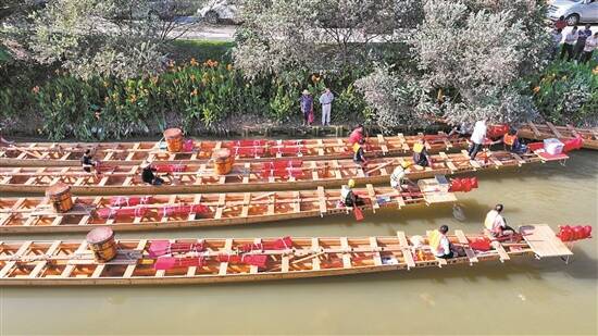 羊城晚报讯 记者石梦卓、通讯员中堂宣摄影报道:5月15日,记者从“中国龙舟之乡”东莞中堂镇获悉,近日中堂镇各大龙船厂精心打造的新龙舟陆续“骏水”,即将驰骋于各地的龙舟赛场和民俗文化活动上。这些“新龙”承载着匠人的智慧与汗水,将点燃端午赛事的激情与活力,向外界展现同舟共济、团结拼搏、力争上游、奋勇争先的龙舟精神,以及中堂深厚的龙舟文化底蕴。 连日来,中堂镇的几家龙船厂上演了新龙“骏水”的“名场面”。清晨的船厂早已热闹非凡,人头攒动,他们当中多数都是前来接“新龙”回家的人,目光紧紧聚焦在一条条线条流畅、结构扎实、光滑锃亮的新龙舟上。不少人难掩内心的兴奋与期待,纷纷上前观摩、抚摸着崭新的龙舟,仿佛已经感受到了东江浪花的激荡,沉浸在即将启航的喜悦之中。 吉时已到,庄重的祭祀仪式开启。在船首处,摆放着烧猪、荔枝、龙船饼等食物和水果,这些供品不仅色香味俱全,更蕴含着五谷丰登、吉祥安康的美好寓意。 随后,师傅们依照传统习俗,依次进行开龙口、装龙头、放冚板等流程,每一个环节都一丝不苟,严格遵循传统仪式,承载着人们对平安、顺利、行运的祈愿,彰显出传统民俗文化的独特魅力。在新龙正式“骏水”之前,长者亲自主持点睛仪式,一边洒上香茅水,一边口中念念有词,说着吉利安康、风调雨顺等祝福语。点睛完成后,仿佛赋予了龙舟新的生命,它龙精虎猛、蓄势待发,准备开启新的征程。 在阵阵鞭炮与锣鼓的喧嚣中,前来迎接新龙舟的健儿们分列在“新龙”两侧。随着号令声响起,他们齐心协力,铆足劲儿,将新龙舟缓缓推入船厂前的河中进行“试水”。 新龙舟成功入水后,健儿们迅速在船上插好旗帜,拿起船桨,互相洒下象征祝福的龙舟水。随后,他们登船坐稳,随着哨声响起,锣鼓声、鞭炮声再次响起,新龙舟在东江江面上破浪前行,缓缓进行试水表演,并在船厂门口举行“谢师”仪式。据透露,新龙舟“回家”后,所在村庄还将举行仪式,祈求海不扬波、风调雨顺、出入平安。 中堂龙舟制作技艺作为国家级非物质文化遗产,素有“好龙舟,中堂造”的美誉。今年新龙舟纷纷下水,不仅展现了这项传统工艺的蓬勃生机,更印证了中堂龙舟造船厂订单量不俗的市场表现。 据不完全统计,中堂镇四家龙舟造船厂今年已承接30余条龙舟的订单,客户主要来自东莞、广州、江西、福建等地。与去年同期相比,传统款式龙舟的订单量显著增长。随着新造龙舟陆续下水,这些“新龙”将在各地龙舟赛事和民俗活动中亮相,一展风采,为端午佳节增添精彩。