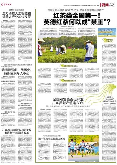 羊城晚报记者 李程 梁辉森 近日,“中国茶叶区域公用品牌价值评估研究”专项课题发布的《2025中国茶叶区域公用品牌价值评估报告》显示,英德红茶区域公用品牌价值达51.78亿元,在全
