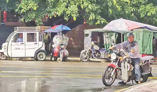 21日,韶关乐昌城区,摩托车司机正在揽客 |