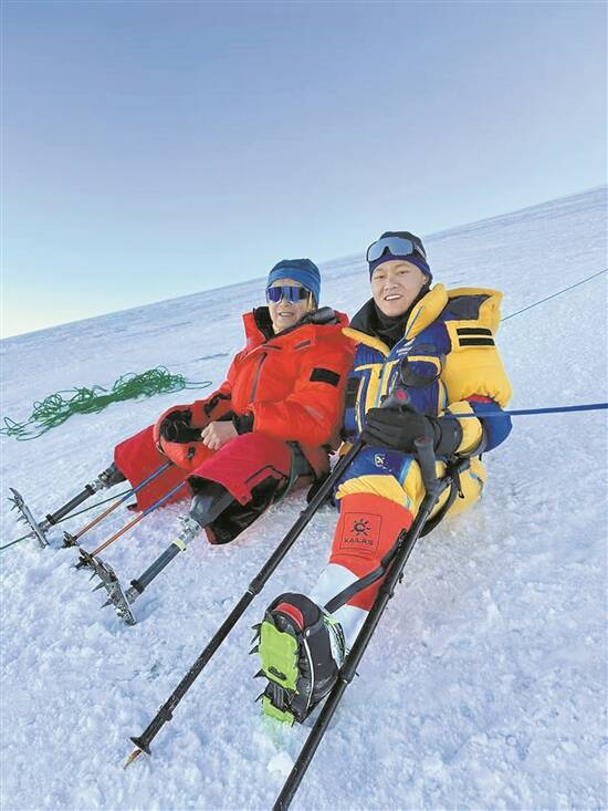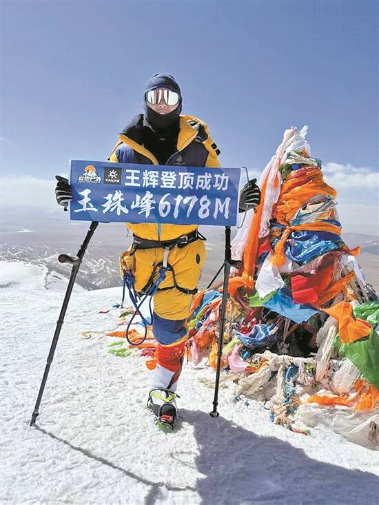 文/羊城晚报记者 王隽杰 图/受访者提供 5月3日中午,昆仑山脉玉珠峰顶,来自河北邯郸的青年王辉振臂高呼,他终于成功踏足海拔高度超过6000米的雪山之巅。 王辉今年30岁,与寻常登山者不同的是,他所能倚靠的只有一条腿和一副拐杖。2016年,王辉因病失去右腿,这给曾是军人的他带来沉重打击。茫然徘徊时,他依靠亲友的鼓舞与史铁生的文字走出困境,并在2023年接触到登山运动。 即便身有残疾,王辉依然拥有一副强健体魄,“特种兵式旅游”盛行时,他曾在四天内登顶五岳。对王辉来说,此次成功登顶玉珠峰既是一份荣耀,也是全新的开始,他心中的终极梦想是登顶珠穆朗玛峰,“人生亦如登山,只要踏实走好脚下的路,总能一步一步靠近目标。”王辉说。 一览众山小 5月3日10时30分左右,午间的阳光穿透云层,洒落玉珠峰顶。王辉拄着自制的冰锥拐杖,在海拔6178米的雪山之巅留下了自己的足迹,极目远眺,巍巍昆仑山脉延绵不绝;俯观近处,巨大的冰裂缝似斧劈雪山留下的痕迹。绝景是大自然对勇者的奖赏,王辉重忆起“一览众山小”的时刻,仍有自豪之感。 今年3月11日,王辉收到登山俱乐部邀约攀登玉珠峰的消息时,心里满是纠结。他2023年才接触登山运动,入门时间不长,虽然曾在去年成功登顶过海拔5000多米的四川奥太娜雪山,但面对海拔超过6000米的玉珠峰,王辉没有把握一定能成功登顶。 王辉花费了大量的时间查阅资料,了解到玉珠峰虽有陡峭之处,但仍属“徒步型”雪山,深思熟虑之后,他决定接受这个挑战并为之做足准备。 由于只有一条腿,一副好的拐杖对于王辉来说至关重要,甚至可以说是他能否成功登顶的关键。在攀登奥太娜雪山时,王辉曾在拐杖头上安装冰爪,但效果不佳,险些没能完成登顶。而攀登玉珠峰的路上颇多亮冰,对设备抓地力的要求更高,此前的方案已难奏效。 王辉反复思量,决定将拐杖头的冰爪换成冰锥,冰锥只有一个落点,可以牢牢插入冰中,稳定后依靠拐杖支撑起左腿跳跃,如此便可一步一步向上攀登。王辉是个细心人,临行前他还多准备了两个拐杖头用于替换,以防意外发生。 4月28日,王辉与来自全国各地的登山队友们在青海省格尔木市集合,随后前往西大滩,最终抵达玉珠峰脚下的登山小镇。此处海拔达5000米以上,在适应性训练时,王辉已有轻微的高原反应,头晕脑涨,难以入睡。 5月3日凌晨4时许,王辉和队友们出发冲顶,一路小心谨慎,顺利登顶。谁料在下山时,由于角度问题,拐杖头的冰锥无法插入冰中,王辉只得在向导的帮助下缓慢下滑。“每一次登山后我都在总结经验,只求下次能做得更好。”王辉说。 登山“同路人” 在登山队伍中,队友之间互相鼓劲是传统,而对王辉来说,他总能收获到更多一分感动。许多队友被王辉的精神打动,找到他合影留念,有人对他说:“我本想攀登雪山,没想到遇到了比山还高的存在。” 此次登山之旅,王辉也结识了自己心中“高山”一般的人物——夏伯渝。夏伯渝今年已是76岁高龄,他在1975年第一次攀登珠峰时因冻伤失去两条小腿,此后40多年间,装着一双假肢的他又先后四次向珠峰发起挑战,最终在69岁的年纪成功登上世界最高峰。 王辉告诉记者,在2024年初次攀登雪山时,他已听说了夏伯渝的故事,并一直将其视为“偶像”,“一位双腿截肢的老人,在69岁的年纪登顶珠峰,太让人敬佩了。” 结伴登山时,夏伯渝夸赞王辉体能不错,未来可以考虑攀登海拔7500多米的慕士塔格峰,还称他自制的拐杖很有趣。双方的交流并不多,但很快熟络亲近。下山的途中,王辉还偶遇了一位小臂截肢的朋友,他们同样很快熟识。王辉表示,在茫茫雪山中,两位残疾登山者遇到彼此,更易生出“同道中人”的感慨。知道在向上的路上有人陪伴,便会生出不竭动力。 志在最高峰 王辉出身农村家庭,2014年入伍后他便想留在部队中谋求发展,能有一番作为。谁料在2016年,一场大病带走了他的右腿,“好端端的一个健全人,一个军人,变成了残疾人,真的很难以接受。” 在医院休养期间,由于主治医师推荐,王辉开始接触文学,他偶然间在网上刷到了史铁生的经历,便买来相关作品阅读,史铁生的文字一度成为王辉的精神支柱。如今想来,王辉认为史铁生和夏伯渝是一样的人,“面对上天的不公,不颓废也不消沉,反而依靠强大的精神力量,在各自的领域成为佼佼者。” 此外,家人和身边朋友的陪伴也给了王辉很大的鼓舞,他逐渐走出泥潭,开始尝试做一些力所能及的工作,在点滴日常中重建对生活的信心。为了恢复体能,他在家中练习仰卧起坐、深蹲、平板支撑,还积极参与游泳、羽毛球等体育运动。 2023年,王辉常在短视频平台刷到登山的视频,他动了心思,“虽然只有一条腿了,但我也可以去试试。”王辉尝试登顶的第一座山是家乡邯郸的古武当山,海拔1000多米的高山,他没怎么费力就成功登顶,甚至比许多健全人走得还要快。看着山顶上的风景,王辉有了信心。 2024年夏天,正是“特种兵旅游”风靡的时候,王辉报名参加了“五岳特种兵”活动。他从北岳恒山开始,原计划用5天时间爬完五岳,没想到最终只用4天便完成目标,在所有参与者中排名第124位。 自接触登山运动开始,王辉已成功登顶30余座山峰。一路上,常有人好奇发问:“你身体这个条件还能爬山吗?”王辉平静回应:“当然可以。”他不太在乎旁人看他的目光,只专注于自己脚下的路。 王辉喜爱登山