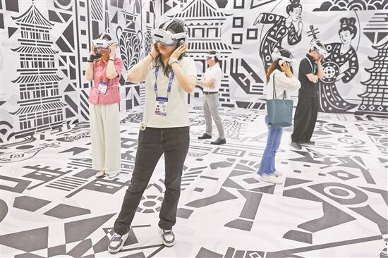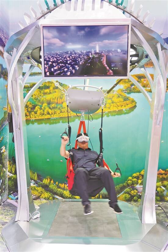 2025年5月23日,文博会南京展厅,观众现场体验VR飞越紫金山 羊城晚报记者 宋金峪 摄 |