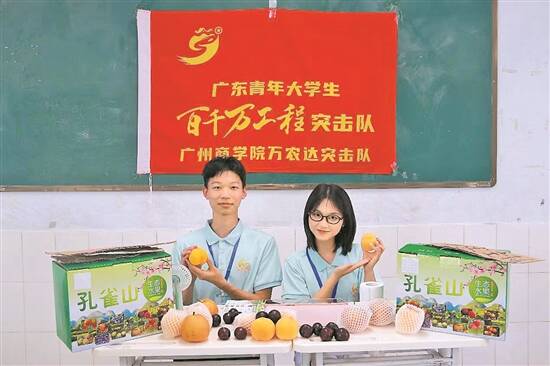 广东青年大学生“百千万工程”突击队开展直播助农 羊城晚报资料图 |