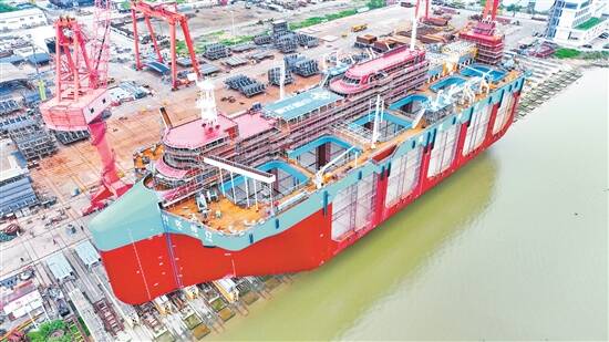羊城晚报讯 记者陈卓栋、通讯员黄丕康摄影报道:5月27日,记者从中交四航局江门航通船业有限公司(以下简称“中交四航局航通公司”)获悉,中交四航局航通公司建造的全球首艘自航式水体自然交换型养殖工船“湾区伶仃”号在江门下水。记者了解到,该船未来将交付珠海海洋集团用于深海养殖,这意味着广东“海洋牧场”将再添一艘“巨无霸”。 据介绍,“湾区伶仃”号深海养殖工船总长155.8米,型宽44米,型深24米,最大吃水深度达20米。该船是全球首艘船型首尾与柱稳式框架钢结构船身融合构型,船舶和深远海钢制网箱技术结合的“渔业养殖航母”。 与一般的渔船不同的是,“湾区伶仃”号水下部分并非封闭结构,而是由15根方形立柱,拼砌成一个“水下宫殿”。通过挂设渔网,隔出12个独立的养殖舱室,养殖空间近8万立方米,可同时开展多种鱼苗养殖,并提供广阔的自由游动空间。 据悉,该船还独创水体自然交换技术,实现自然海水零污染循环,创造“准野生”生长环境,提升渔获品质。同时该船采用全自动无人养殖模式,实时监测鱼群状态和环境数据,并采用一键式智能投喂饲料、专利技术吸鱼泵收鱼,极大地提升了生产效率。“湾区伶仃”号建成后,年产能可达3000至5000吨,相当于陆地5000亩鱼塘的产量,是当之无愧的“养殖航母”“深海粮仓”。 值得一提的是,“湾区伶仃”号采用了先进的全电推进系统,拥有20千瓦的风力发电系统,能够满足静态养殖时的用电需求;两台3600千瓦的舵桨机、3.8米直径的桨叶能够让“湾区伶仃”号自由遨游。项目总工程师黄晨光介绍道:“‘湾区伶仃’号静态养殖时100%使用清洁能源,大大减少碳排放量。” 黄晨光还介绍,“湾区伶仃”号搭载高精度的GPS、北斗星导航定位系统,可实时报告航行水域的位置。在“游弋”的模式下,“湾区伶仃”号能够依据实时的海洋环境数据和鱼群分布情况,通过驱动螺旋桨运转,灵活调整航速、航向,精准找到适合养殖鱼群生长的水域。“湾区伶仃”号还在各个养殖舱室内安装了多个传感器,当局部海域水温异常或水质污染时,“湾区伶仃”号可自动升高养殖舱室,减少水阻力,快速航行到理想水域,确保养殖鱼群安全质优。此外,“湾区伶仃”号配有观光甲板、休闲住宿设施,具备垂钓、水上运动、研学等多种配套功能,停泊时最大登船人数199人。在静态养殖期间,能为游客提供垂钓、主题食宿等服务,可联动海岛旅游,打造“渔业+文旅”新模式。