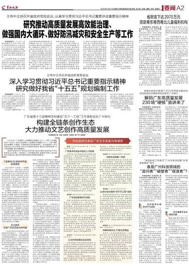 羊城晚报讯 5月30日,省长王伟中主持召开省政府常务会议,深入学习贯彻习近平总书记对“十五五”规划编制工作作出的重要指示精神和对广东系列重要讲话、重要指示精神,落实省委常委会会议要求,研究做好我