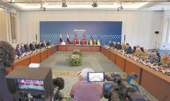 6月2日在伊斯坦布尔拍摄的俄乌第二轮直接谈判现场 新华社发 |