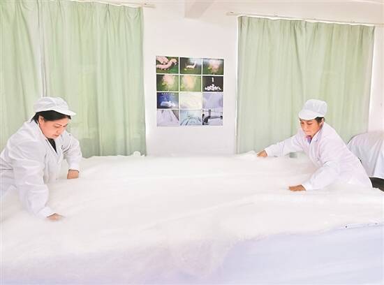 文/图 羊城晚报记者 李程 通讯员 孟齐飞 仲夏时节,清远市阳山县的万亩桑园绿浪翻涌,迎来了蚕茧采收的关键期。田间地头,蚕农们忙碌地穿梭在桑树间,采收着一个个饱满的蚕茧;而在蚕房车间内,智能分拣中心的高效运转,则展示了科技兴农的现代化图景。 作为阳山县的传统支柱产业,桑蚕业在政策扶持、技术人才赋能和产业链延伸的推动下,迎来了产销两旺的高峰期。据统计,2025年全县桑园面积已达1.1万亩,预计鲜茧产量将突破2200吨,产业综合产值将达到9000万元。 蚕桑产业让群众钱袋子鼓了 在阳城镇鱼水村,683亩桑田勾勒出了乡村振兴的底色。其中120亩由村集体统一种植,通过优化种养技术、拓展销售渠道,实现村民、村集体“双增收”。该村积极联动水口、五爱村发展蚕桑产业,蚕桑产业呈连片发展良好态势。 青莲镇峡头村自20世纪70年代起就开始发展蚕桑产业,目前种植面积已达3000余亩,年产值超过2000万元。据了解,今年一季度青莲镇共种植桑叶3895亩,总产量580吨,总产值为53万元。 在产业链延伸方面,阳山县也取得了显著成效。小江镇沙寮村有40多年种桑养蚕历史,从上世纪90年代开始,村里就与广东省丝源集团有限公司阳山分公司紧密合作。“我们公司免费提供技术,每个村都有驻点关注生产线,农户不用担心蚕茧销路,公司包回收、包技术指导。”企业驻点师傅陈章安说。村中的蚕桑产业实现统一规划、管理、质量和销售,做到规模化种植、科学化施肥、标准化管理,“蚕宝宝、金叶子”真正让群众钱袋子鼓了。 引进专家解决各类技术难题 阳山县委、县政府将蚕桑产业列为农业龙头产业,出台涵盖产业布局、经营主体扶持、技术提升和产业融合等方面的扶持政策。在政策引导下,小江镇、黎埠镇、青莲镇等9个乡镇成为桑田集中分布区,全县桑田面积达1.1万亩,形成区域化、规模化、标准化发展格局。近年来,政府通过“公司+基地+合作社+农户”模式,让农户实现多重收益,鼓励产业融合,促进蚕桑深加工和“农旅”开发,发展生态循环农业和旅游项目。 人才方面,阳山县乡村振兴人才驿站柔性引进华南农业大学博士生导师林建荣等13名蚕桑专家,为产业解决各类技术难题。人才驿站注重本土人才培育,为全县13个乡镇1.1万亩桑园近3000户农户提供技术培训与生产指导。 推动生产技术进步和产品创新 阳山县积极与科研院校合作,在品种选育上成果丰硕。自主选育出粤桑11号、粤桑51号等优质桑苗新品种,产量比老品种提高30%以上,抗病性强,规模化养蚕中优质桑苗种植面积达200亩以上。同时,两广二号、粤蚕6号等优良蚕种培育,提升了高品位丝蚕茧比例,增强了产品市场竞争力。生产技术上,科技带来全方位革新。小蚕共育技术全县普及度达80%,由专业人员集中培育小蚕,提高成活率和质量,缩短养蚕工期。 科技推动蚕桑蚕茧深加工领域产品创新,利用现代食品加工技术开发桑葚酒、桑葚果汁,保留桑葚营养与口感;先进纺织技术提升丝绸品质。在蚕桑产业与乡村旅游融合方面,运用互联网技术宣传推广,吸引游客体验桑葚采摘、科普旅游等项目,推动蚕桑产业从传统种养迈向多元化发展新征程。 从一片桑叶到一匹绸缎,阳山县以创新和全链思维重塑传统桑蚕业,串联起“种植-加工-农旅”的三产融合路径,编织着乡村振兴的“金色未来”。