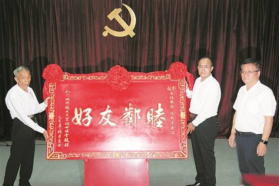 汕头潮南区仙城镇两社区代表互赠“睦邻友好”牌匾 |