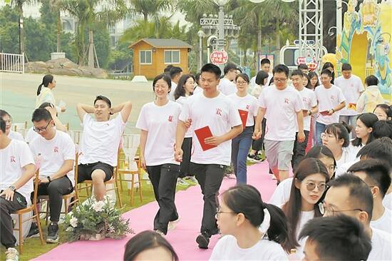 5月25日,由共青团中山市委员会、中山市民政局、中山市自然资源局、中山市妇联共同主办的“牵手团缘·青春偕进”集体婚礼暨“结婚种棵树”主题活动在中山欢乐海岸奇遇时光乐园和沙咀公园举办。作为承办单位之一,中山福彩为50对新人送上美好祝福,并积极倡导简约绿色婚俗新风,传播“公益、慈善、健康、快乐、创新”的福彩文化。 活动现场,50对新人身穿情侣服,在亲友与嘉宾的见证下宣读爱的誓言,接受结婚证书与祝福。中山福彩特别为每对新人送上“喜相逢”刮刮乐即开票,以“祝福+公益”的形式为婚礼增添欢乐气氛。新人们手持寓意美好的刮刮乐,体验公益福彩的乐趣,了解“公益、慈善、健康、快乐、创新”的福彩文化。 婚礼仪式后,新人们移步岐江畔的沙咀公园,携手共种象征爱情与责任的小树苗。大家默契配合,挥锹培土、浇水灌溉、悬挂心愿牌……一片新绿迎风起舞,同心林生机勃勃,既代表着对婚姻“同心同德、百年好合”的祝愿,也为“绿美中山”生态建设贡献了力量。参与活动的新人表示:“婚礼与植树活动结合,既美好又有意义,也是履行社会责任!” 相关负责人表示,中山福彩始终秉持福利彩票“扶老、助残、救孤、济困”的发行宗旨,通过集体婚礼宣传公益福彩,向新人们表达美好的祝福,传递福彩公益文化。同时,借助“结婚种棵树”主题,倡导绿色低碳的婚俗新风,助力生态建设、践行福彩公益理念和社会责任。 (文/黄颖琳 黄丽娜 图/中山福彩)