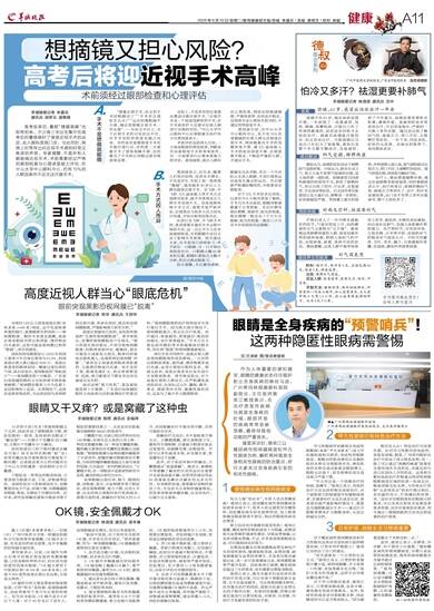 羊城晚报记者 朱嘉乐 通讯员 邰梦云 唐艳丽 高考结束后,暑期“摘镜高峰”也即将到来。不少高三毕业生集中在高考后的暑假做好了接受近视手术的决定,走入眼科医院门诊。与此同时,