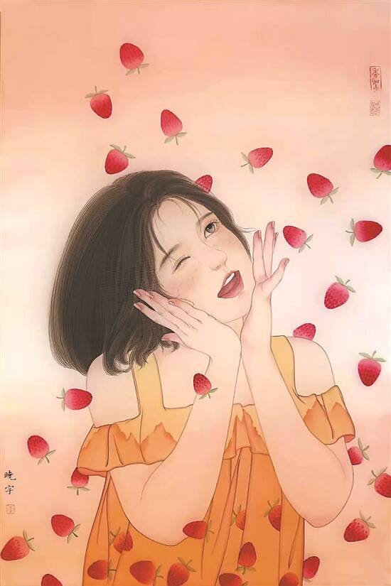 草莓味的夏天(国画)