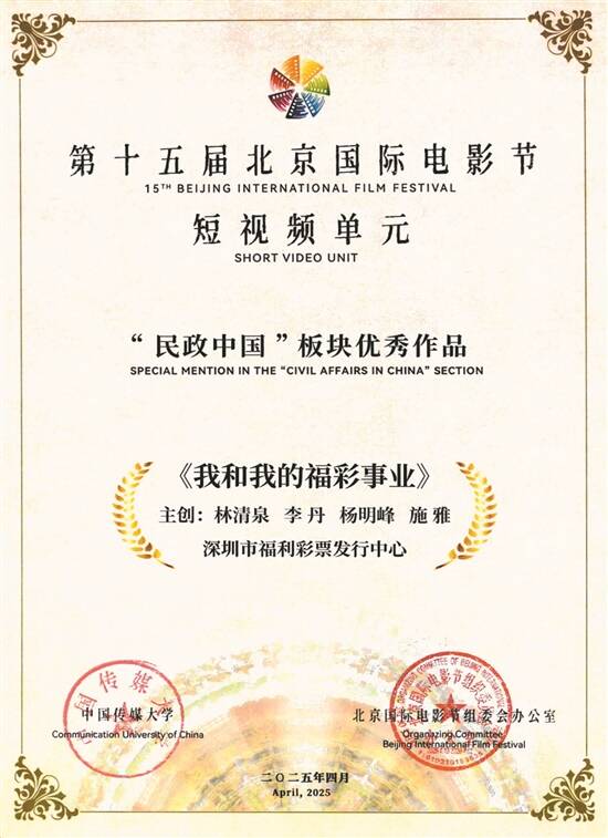 深圳福彩原创视频在北京国际电影节获奖 图/深圳福彩 |