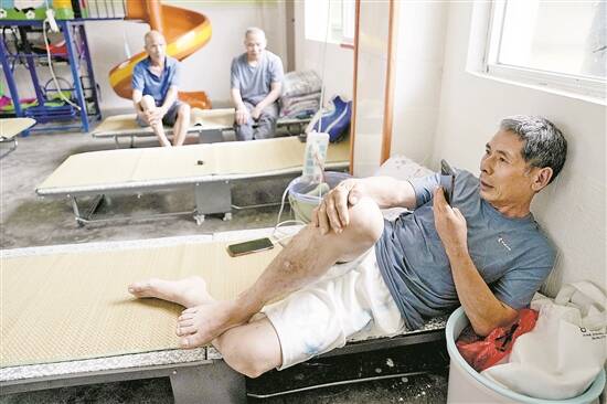 17日,茂名信宜市贵子镇秋风根小学安置点,村民向家人报平安 |