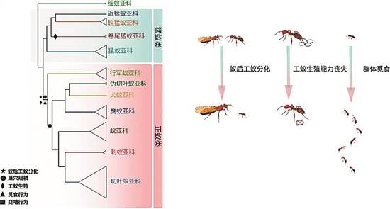 蚂蚁的系统发育关系及重要节点上社会性状形成 |