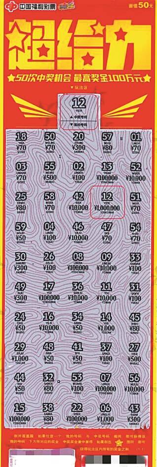 文/羊城晚报记者 黄颖琳 通讯员 徐荣 插图/采采 记者从珠海市福彩中心获悉,6月2日,珠海一彩民在万象汇商圈44030862福彩销售站点购买“超给力”刮刮乐即开票,幸运刮出百万大奖。次日,大奖得主李女士(化名)火速前来珠海市福彩中心办理兑奖手续,现场分享了自己的中奖经历。 据李女士回忆,当天中午,她和家人去万象汇商场逛街,路过福彩销售站点时,见到刮刮乐展示柜前有不少人在刮奖,现场十分热闹。她当即上前买了两张“超给力”刮刮乐即开票,和丈夫一人一张开刮。当刮到第三行覆盖膜时,出现了数字“12”,再刮开其对应的奖金区域为“¥1000000”。 “这是中奖号码吗?我是不是中奖了?”李女士连忙找销售人员确认。销售员仔细核对彩票后,告诉她中了一等奖,中奖奖金高达100万元。销售员肯定的回答,让李女士夫妇欣喜若狂,“从未想过幸运会突然降临,太开心了!” 对于使用规划,李女士表示,会合理安排中奖奖金,以后会继续理性购彩,支持社会福利和公益事业。 坚守公益初心,汇聚爱心力量。中国福利彩票为社会福利和公益事业而生,由国家特许发行,以筹集公益金为目的。一张张福利彩票,承载着购彩者的爱心,肩负公益使命,持续为社会福利和公益事业的发展贡献力量。感谢每一位购彩者,是您的参与和支持,汇聚成福彩公益金,帮助有需要的人。每一次中奖,是对购彩者奉献爱心、助力公益的最好回报,希望大家在支持福彩公益事业的同时收获快乐和幸运。