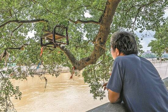 绥江边,黄伯望着被洪水卷到树上的椅子 |
