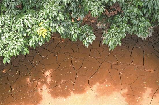 洪水退去后,堆积的淤泥慢慢干裂 |