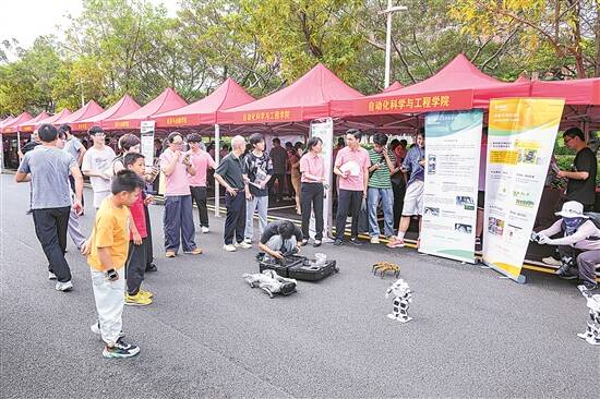 华工开放日活动现场,学生展示智能机器人 学校供图 |
