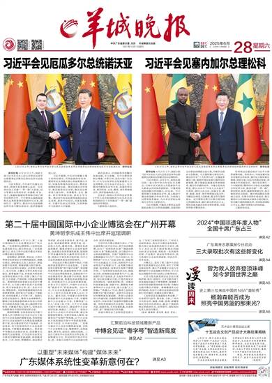 中共广东省委主管、主办 羊城晚报社出版 1957年10月1日创刊 33℃ 25℃ 2025年6月28日 乙巳年六月初四