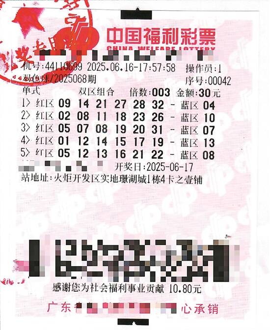 羊城晚报记者 黄颖琳 通讯员 黄丽娜 黄英杰 插图 采采 记者从中山市福彩中心获悉,6月17日,中国福利彩票双色球第2025068期开奖,当期全国共中出一等奖24注,其中3注花落中山市火炬开发区实地璟湖城1栋4卡之壹铺的44110699福彩销售站点。中奖彩票为一张30元的5注3倍单式彩票,中奖金额共1650万元。这是中山市今年中出的第八个100万元及以上福彩大奖,也是中山市今年首个1000万元以上的福彩大奖。 6月19日一早,大奖得主李先生在朋友陪同下,来到中山市福利彩票发行中心办理验票兑奖手续。据李先生介绍,他接触福利彩票已多年,平时喜欢购买双色球,偶尔会买刮刮乐即开票,每次投入不多,作为日常娱乐消遣,也能助力公益。 此次中大奖的彩票是他在6月16日购买的,已守号一段时间。开奖后,李先生核对号码,竟发现自己惊喜中得3注一等奖,内心难掩激动。 李先生表示,他每年都会参加中山的慈善万人行,以后也会继续支持福利彩票公益事业。