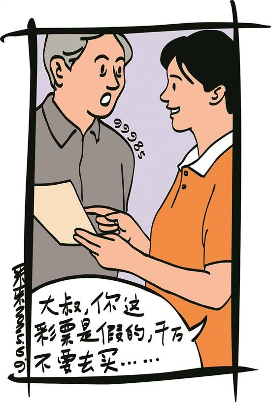 插图:采采 小姑娘把资料放在手里,仅仅只扫了一眼,就连连摇头,说道:“大叔,你这彩票可是假的,千万不要去买!” “我看它和你卖的那些彩票好像相差不多,有什么依据说它是假的呢?” 小姑娘把店里正在销售的彩票,和那份资料上的样票放在一起,一五一十作了详细介绍。原来,看一张彩票是不是假的,一辨机构,看是否为福利彩票或者体育彩票,目前国家准许发行的彩票就这两家。二看游戏,彩票发行销售须经财政部审批,包括彩票游戏名称、规则、发行销售方式、范围等,其中任何一项未经批准均属于非法彩票。三查委托,如果确认是经财政部批准的彩票,那就要看销售人员和地点是否具有合法资格。 “姑娘,要不是你的介绍,我差点就要上当了。”李小刚不好意思地说,“我得好好感谢你呢!没想到你懂得这么多,看来你是个资深彩民?” 小姑娘嘻嘻笑道:“我可不是什么资深彩民,识别真票假票,这也是我们的责任。嘿嘿,我还是希望做个彩票小达人。” (汤祥龙)