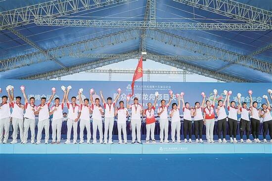文/羊城晚报记者 柴智 郝浩宇 图/羊城晚报记者 刘畅 柳诚 7月7日,第十五届全国运动会群众比赛龙舟项目决赛在佛山市南海区丹灶镇仙湖圆满收官,在斩获男子组500米直道赛冠军后,广东代表队在为期三天的比赛中共收获六块金牌,继2017年和2021年两届全运会在群众比赛龙舟项目进账16金2银后,这支龙舟赛场上的“梦之队”依然战无不胜。 本届比赛共设男、女子及混合组100米、200米、500米直道赛共9个小项。根据赛制,每支队伍限报6个项目,最终广东队参加的男子组100米、女子组100米、混合组100米、女子组200米、混合组200米和男子组500米6个项目,全部让金牌稳稳落袋,“中国龙舟看广东”这句话可谓实至名归,广东代表队再次彰显了在龙舟项目上的深厚底蕴和强大实力。 在三天的赛事中,来自全国各省市自治区(含香港特别行政区、澳门特别行政区)的23支龙舟队在碧波荡漾的仙湖奋勇争先,全面展现了各地区龙舟运动的竞技水平,借助最高水平的平台实现交流,将有力推动龙舟运动的发展和龙舟文化的推广。 作为远近闻名的“龙舟之乡”,佛山乘着首次举办十五运会龙舟决赛的东风,点燃城市夏日运动激情,将龙舟热推向最高潮,加速推动体育与文化旅游的深度融合,也将以此为契机让佛山龙舟文化走向全国、走向世界。 本次龙舟赛的另一大特色是粤港澳联队首次参赛,据悉,粤港澳联队的队员中包括10名广东队员、8名香港队员、8名澳门队员。尽管备战时间有限,但他们依然获得混合组500米第6、男子组200米第9、女子组500米第9名的佳绩,展现了粤港澳三地运动员齐心的精神风貌,队员们纷纷表示在与顶尖选手的交流中收获满满。 十五运会将首次在粤港澳三地举办,粤港澳联队的首次参赛,是三地深度融合发展的生动实践,也将推动三地多领域、多维度的高质量发展。正如教练潘广德所言,“三地的龙舟文化同源,广东与香港澳门是一家亲。”