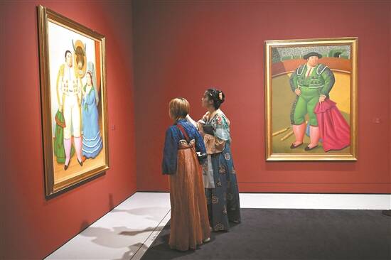 文/羊城晚报记者 梁善茵 朱绍杰 实习生 詹雯莉 “发福”的毕加索、长着人脸的猫、身体浑圆得像气球的老虎……哥伦比亚国宝级画家费尔南多·博特罗(Fernando Botero)创造的奇妙世界,来到了广州白鹅潭。 7月10日,由广东美术馆与费尔南多·博特罗基金会联合主办的“哥伦比亚狂想——博特罗艺术大展”正式启幕。该展览是博特罗作品在粤港澳大湾区的重要呈现,汇集其艺术生涯中极具代表性的80余件作品,涵盖油画、雕塑和纸本等媒介,多角度呈现这位世界级艺术大师打造的视觉奇观。展览将持续至11月23日。 费尔南多·博特罗的创作因充满生命力的丰腴体积、饱和的色彩与深邃的叙事而独树一帜,形成了以他的姓氏命名的“博特罗风格”(Boterismo),不仅重塑了大众对形体美的感知,更成为哥伦比亚乃至整个拉丁美洲文化身份在世界艺坛的耀眼象征。 扎根故土的日常诗意表达 不同于往常的“白盒子”,展厅里纯粹而明亮的牛油果绿、克莱因蓝、安可拉红背景墙,与费尔南多·博特罗画作的大胆配色相映衬。 “我父亲始终认为,夸张是一种艺术。他通过夸张来呈现物体的‘体积’,从而为观众带来愉悦感,让人们看到生活中美的一面。”费尔南多·博特罗的儿子费尔南多·博特罗·塞亚来到了展厅,他表示,无论是人物、动物还是静物,其父亲都以丰盈的体态和光洁的质感呈现出“体积”的存在。这种“体积”不仅关乎美学,更承载着深重的人文精神。 费尔南多·博特罗出生在哥伦比亚的麦德林小镇,他的艺术之根深扎于拉丁美洲的土地和记忆。二十世纪五六十年代,青年时期的他一头扎进古典绘画的研习之中,以具象化表达植根于拉美沃土的日常诗意。在抽象艺术与观念艺术占据主流的西方现代主义浪潮下,他成为人们眼中特立独行的“反潮流者”。 展览第一板块名为“故土情结与日常的诗意”,展出的博特罗画作大多反映麦德林的市井生活以及拉美特有的民俗庆典。这些继承了风俗画及情景肖像传统的作品往往具有叙事性构图与鲜明色彩,仿佛是存在于博特罗脑海里的少时记忆,既亲切温柔,却也闪过一丝冷静的检视。 作品《街道》描绘了拉丁美洲小镇上鳞次栉比的房屋和鹅卵石街道。画中人物被放置在田园诗般的街道背景下,他们散步、看报纸、聊天,叙述性地暗示了日常生活的节奏。猫、狗、马等各种动物也出现在画面中,呈现充满活力的公共生活。博特罗在画中使用了透视法,将建筑物往后“移”到丘陵景观之后,为构图提供了深度,而柔和的光线让整个场景变得温暖朴实。 画的不是胖子而是美感 静物创作是每位艺术家在创作当中的经典主题。在第二板块“经典重塑与博特罗风格”中,相比起博特罗绘画中常见的热闹与喧嚣,经过“再创造”的静物画显得格外沉静。 “橘子是自然界里最简单的形状,却也是最难画的。”和达·芬奇沉迷于画鸡蛋不同,博特罗对橘子情有独钟。在《橘子》《阳台上的静物》等作品中,圆滚滚的橘子处于正方形的弯曲背景中央,观者感觉自己沉浸在球体内部,开始从内部体验这种球形体积带来的丰腴美感。 色泽妍丽的热带水果、锋利洁白的刀叉、窗帘外显露出的远近景致……博特罗的静物画在继承门类传统以外,更通过强烈的体积感传递出地域风情,直指超越视觉表象的精神内核。 博特罗大受欢迎的作品中还包括一些以其个人风格“临摹”古典名作的作品,如此次展出的《仿委拉斯开兹》《仿拉斐尔〈福尔纳里娜〉》等,不同于写实翻版,画中所有物体都被成倍放大,容易让观众联想到“肥胖”一词。 “我画的不是胖子,而是想通过现实题材来表达一种体积带来的美感。艺术是变形和夸大的,跟胖子没有关系。”博特罗曾在纪录片中指出,在艺术创作的过程中,只要拥有足够的想象力和想法,就必定会改变自然界的本来面貌,艺术创作就意味着变形。 狂欢背后的现实况味 在博特罗的艺术世界中,嘉年华、斗牛与马戏团是三个具有高度象征性的题材。步入第三板块“现实剧场与永不落幕的喧嚣”,观众仿佛成为狂欢、热闹、释放的节庆仪式当中一员。 在拉丁美洲,嘉年华是一年一度最富生命力的节日,它融合了宗教仪式、民间传说、角色扮演与音乐舞蹈等元素。2016年到2017年期间,博特罗集中创作了该系列作品,他曾坦言,自己真正着迷的并非嘉年华的热闹表象,而是那背后的社会心理与人性复杂。 在《嘉年华》画作中,三位人物身着色彩缤纷的外衣,其中右侧男性人物佩戴着猪脸形状的面具。博特罗通过颜色拼贴、以面具遮盖人脸的方式,表现出狂欢背后的克制和深意。而在《主斗牛士》《斗牛士小队》《拖马仪式》等斗牛题材作品中,画面上身材魁梧的斗牛士、鲜红的布料以及倒下的马,更像是展现关于生命的“现实剧场”。 同样富有象征意味的还有博特罗的马戏团系列作品,走近细看可以发现藏在热闹表象之下的微妙情绪反差——人物的脸上没有半点笑容,神情镇静乃至于略显呆滞。那是来自乡村马戏团转瞬即逝的欢乐背后的现实况味。 费尔南多·博特罗·塞亚告诉记者,2006年,他的父亲带着孙子们在墨西哥的一个村庄里观看马戏表演,被表演中复杂多变的色彩、高难度肢体动作所吸引。表演结束后,费尔南多·博特罗独自返回马戏团场地,跟杂技演员、柔术演员、配乐师、服装师对话,了解他们的生活方式