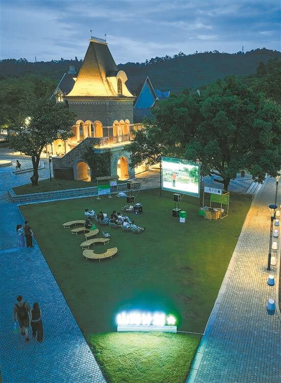 山海训练营户外放映环节,年轻导演们在草地上观看山海计划历年短片 |