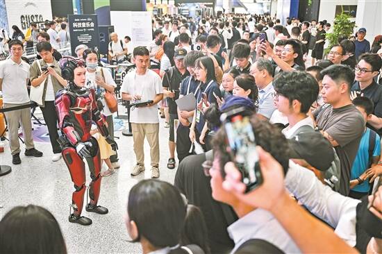 7月27日,参观者在围观一款人形机器人 新华社发 |