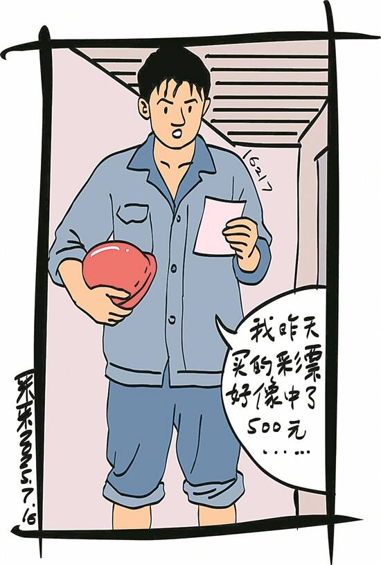 插图:采采 阿凤正说得投入,外面突然传来一阵脚步声。只见一个年轻人探进头来,他脚下的水泥台阶,很快便洇出一片水渍。 “老板!”年轻人的声音带着几分局促,“我昨天买的彩票好像中了500元,可不小心掉进水里了,还能兑奖吗?” 建坤连忙站起身,走到门口。眼前的年轻人浑身湿漉漉的,褪色的工装裤裤腿卷到了膝盖。他左手紧握着红色安全帽,右手攥着皱巴巴的彩票纸片。建坤凑近,微微皱眉:“这彩票,湿成这样子……按照规定,等晾干后,要是上面的信息完整无损……” 阿凤在屋内大声招呼:“别站在外面,进来说呀!” 外面的年轻人讪笑着:“不了,不了,你这儿是木地板,我衣服全湿的……” 阿凤似乎意识到什么,快步走到门口,说:“刚才下水救孩子的,是不是你?” 年轻人有些不好意思地挠了挠后脑勺:“我是对面工地的,昨天在您这买了彩票,刚才准备来兑奖,结果听到桥下有人喊救命……” 阿凤收下彩票并兑了奖。“那谢谢姐了!”年轻人有些迟疑,接过钱,正要习惯性地往口袋里塞,可立马意识到衣服全湿透了,他只好紧紧攥着钱,转身朝着对面的工地走去。 (魏青锋)