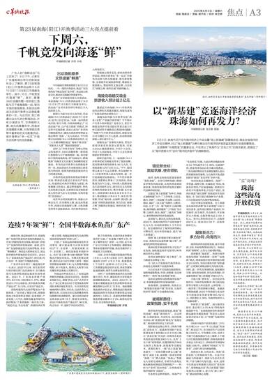 羊城晚报讯 8月8日,珠海市召开全市海洋经济工作会议暨“海上新基建”部署推进会。会上,珠海市发展和改革局发布“重磅”投资机会:珠海借鉴相关经验,创新探索开展“点状供岛”模式,由属地政府主导,根据
