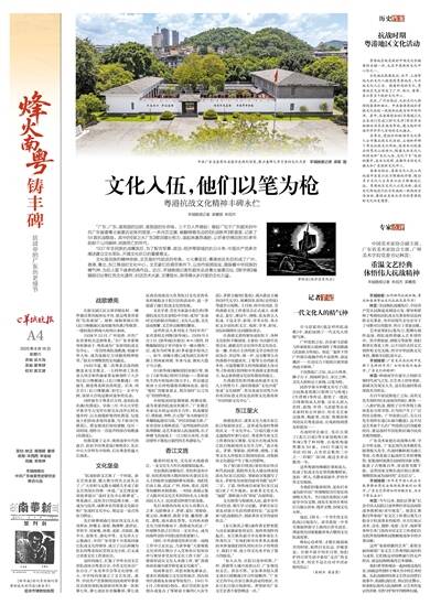 羊城晚报记者 朱绍杰 梁善茵 羊城晚报:如何评价抗战时期,粤北和香港等地文化抗战及其作用? 林蓝:全民族抗战爆发后,中国共产党从民族最高利益出发,领导和影响了粤港地区抗战文化