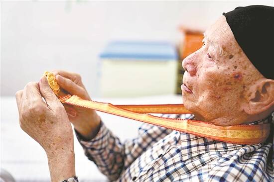 策划/林洁 黄丽娜 董柳 统筹/丰西西 宋金峪 文/羊城晚报记者 李焕坤 图/羊城晚报记者 邓鼎园 “荣誉不仅属于我,还属于所有人(包括牺牲的战友)。”日前,98岁的钱荣在医院病房里接过中国人民抗日战争胜利80周年纪念章时,用带着浓厚苏北乡音说出这句话。 出生于1927年的钱荣,16岁参加革命,先后参加了抗日战争、解放战争、抗美援朝战争,是一名从枪林弹雨中走来的老兵。转业后,他辗转长沙、武汉、广州三个铁路局,始终秉持军人作风,在铁道线上续写“铁血荣光”。 十六岁的抉择 时光回溯至1927年。那年仲秋,钱荣在江苏省沭阳县张圩乡三尖村一间低矮的茅草屋里呱呱坠地。 1937年7月7日,卢沟桥事变爆发,日本帝国主义发动了全面侵华战争。战火很快蔓延至苏北。日军的铁蹄之下,山河破碎,钱荣的家乡也未能幸免。 “父亲常跟我说,侵华日军在中国烧杀抢掠、奸淫妇女、无恶不作,连发现中国人吃了一口大米白面,也必定严罚,是一种深深的屈辱。”钱荣女儿钱剑华告诉羊城晚报记者。 正是在这样的黑暗岁月中,共产党在苏北一带逐渐建立起抗日根据地。钱荣的父亲出身贫苦,忠厚可靠,在乡里颇有威信,因而被组织信任,常协助完成一些任务。1939年前后,钱荣的父亲加入了共产党并担任当地的抗日游击队队长。 在父亲的影响下,钱荣也当上了地下交通员,帮送情报或带路找地下交通站。16岁时,钱荣觉得自己“该为打鬼子出点力了”,便毅然正式参加革命,成为共产党领导的抗日游击队沭阳县大队的一员。 “当时我们的主要任务就是打麻雀战和游击战。那时的装备很差,子弹都是土制的。每人三发,打一枪、装一发。手榴弹比酒瓶还大,笨重得很,白天背在身上,晚上就当枕头用。”钱荣在自己的回忆录中这样写道。 有一次,钱荣跟随队伍在老谢庄宿营。放哨时,他察觉村外似有动静,立刻向连长报告。尽管夜色深沉,连长仍果断下令转移。次日队伍返回原驻地,只见地上遍布敌兵脚印。原来前一晚他们与敌军几乎擦肩而过——若不是及时撤离,恐怕已被敌人“包了饺子”(即围歼)。 淮阴城下的冲锋 不久后,新四军主力部队派员至沭阳县大队协助开展军事训练。训练期间,指导员注意到钱荣表现突出,多次找他谈话,有意培养他加入中国共产党。 那时的钱荣只是一个农家子弟,虽不懂太多大道理,却从共产党人的言行中真切感受到:他们是真正为百姓说话办事、反对压迫剥削、坚决抗击日本侵略者的队伍。到部队后,钱荣懂得了更多的革命道理,对共产党有了进一步的认识。1944年,他成长为一名光荣的中国共产党党员。 同年秋天,钱荣所在的沭阳县大队被编入新四军第3师10旅29团3营11连,补充主力部队兵力。编入主力不久,钱荣就参加了大伊山等一系列战斗。但最令他终生难忘的,是攻打淮阴城。 淮阴(今江苏省淮安市清江浦区、淮阴区所在地)是当时苏北政治、经济、文化中心和水陆交通枢纽,其十余米高的城墙被大运河环绕,四周密布铁丝网、地堡群、炮楼、卫星据点。被日军占领后,淮阴成为其重要的屯兵据点。 1945年8月15日,日本宣布投降后,盘踞在此的日伪军仍负隅顽抗。8月26日至9月6日,为肃清苏北根据地内的残留敌军,新四军以第3师主力攻取淮阴城。 钱荣所在的团主攻淮阴城的西北角。总攻开始后,他与战友冒着猛烈炮火,持续激战两个多小时,最终攀越云梯攻入城内。新四军第3师以雷霆之势攻克淮阴,这座沦陷6年7个月的古城终于获得解放。此役胜利,使苏中、苏北、淮南、淮北解放区连成一片,打通了华中四大解放区的生命线。 从战场到铁路建设 抗战胜利后,钱荣听从部队号令,先后参加了解放战争、抗美援朝战争,用血肉之躯一次次守护家国安宁。 在东北四平保卫战中,他身负重伤,失血过多昏死过去,被人抬进死人堆里。万幸的是,有人发现他还有一丝气息,硬是从死亡边缘把他救回;在朝鲜战场上,面对美军的疯狂轰炸,为保障“钢铁运输线”的畅通,作为铁道兵四师的一个副营长,在沸流江的铁道边上,他毫不犹豫冲上前将美军飞机投下的定时炸弹拆除。 从朝鲜回国后,钱荣先后参加了宝成线、黎湛线和黔桂线的铁路建设。1955年,钱荣被授予大尉军衔。 是什么激励钱荣奔赴一个又一个战场?钱剑华说,支撑父亲一路走来的,是一个朴素而坚定的信念:为了祖国的和平安宁,为了让老百姓都能过上好日子。“死没什么可怕的,就是眼睛一闭的事。”钱荣总是语气淡淡地说。 然而经过艰苦的战争年代,钱荣的身体留下了严重的战争创伤。他的胃被切除了三分之一,腰腿部位长期饱受旧疾之苦,双手也曾因严寒冻伤而导致功能受损。 1960年,钱荣在铁道兵副团长任上转业,后在广州铁路分局担任过政治部副主任、纪委书记。1987年离休,任广州铁路分局老战士协会会长。 【记者手记】 于细微处,见老兵的家国深情 采访老兵钱荣的过程,更像是一场与历史的温柔对话。躺在医院病床上的他在提及过往与家国时,眼中总是迸发出别样的光彩,让我对 “铁血荣光”有了更具象的理解。 老兵的家国情怀,更藏在日常的点滴里。一日三餐时,他雷打不动收看新闻;家庭聚餐时,他会突然考问年轻人中国首艘航母的参数,准确报出“辽宁舰”长宽与载机数量。如今需要家人轮流送餐、护工照料,他会反复说着“麻烦你了”,这份谦逊与体谅,恰是历经沧桑后对生活最真挚的