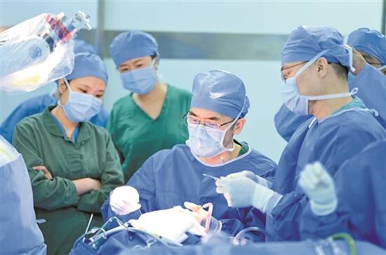 郭燕舞(中)主刀为12岁患者实施脑机接口手术 受访者供图 |