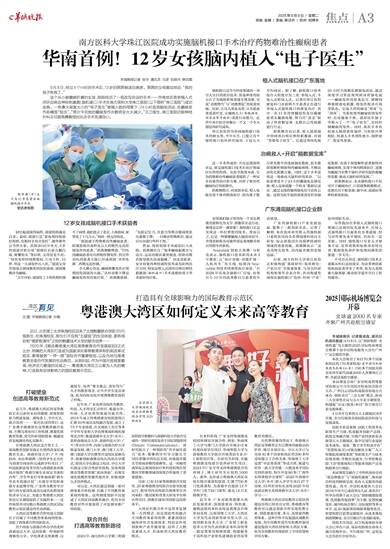 羊城晚报记者 张华 通讯员 马彦 伍晓丹 韩羽柔 9月8日,经过4个小时的手术后,12岁的圆圆被送回病房。圆圆的父母激动地说:“我的孩子有救了。” 这个从小被癫痫折磨的女孩,刚