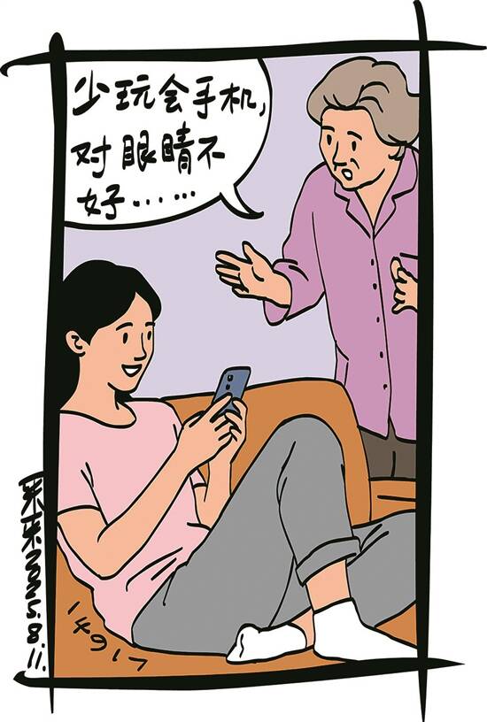插图:采采 倩蓉的彩票店开在城市商务区,附近写字楼林立,所以店里的顾客大多是白领。中午,白领们下楼吃过饭以后,有的买杯咖啡上楼休息,有的则会走进倩蓉的彩票店。店里灯光温暖,摆着柔软的沙发,布置得温馨舒适,加上倩蓉母女俩贴心的服务,大家总爱到店里坐一坐,然后买几张彩票娱乐一下,缓解紧张的工作压力。 以前,倩蓉一个人看店,忙里忙外,每天累得腰酸背痛。现在母亲退休了,主动过来帮忙,让倩蓉着实轻松了不少。可老太太有个毛病,就是太爱操心,甚至爱管些闲事,常让倩蓉哭笑不得。 看到有人花费稍微高了些,母亲就会在顾客身后轻声提醒:“小伙子,买彩票要理性哟。”待顾客走后,倩蓉埋怨说:“人家又不是小孩,自然懂得理性消费,哪用得着您来操心?” 忙碌了一整天,母女俩回到家,倩蓉窝进沙发掏出手机,想刷刷短视频。但最多5分钟,母亲就会走过来唠叨:“少玩会手机,对眼睛不好。”倩蓉从冰箱里拿出冰淇淋,刚咬一口,母亲又过来劝道:“吃冰凉的东西伤肠胃。”晚上11点,倩蓉与闺蜜电话里聊得正欢,母亲来敲门了:“早点睡,熬夜很伤身体的。” (董川北)