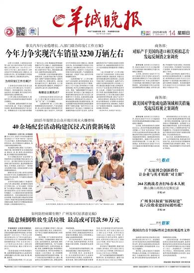 中共广东省委主管、主办 羊城晚报社出版 1957年10月1日创刊 35℃ 25℃ 2025年9月14日 乙巳年七月廿三 星期日 责编/