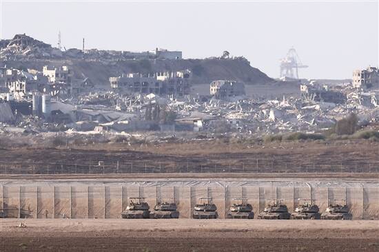 这是9月16日拍摄的位于加沙边境以色列一侧的以军部队 新华社发 |