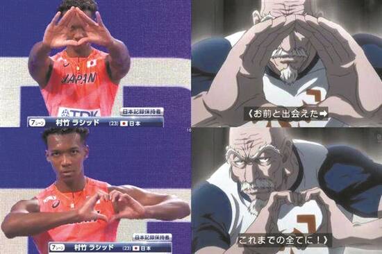正在火热进行中的2025年东京世界田径锦标赛上,顶尖运动员们以动漫经典姿势抢镜,成为一道引人注目的风景线。 ●美国短跑名将诺亚·莱尔斯无疑是这场“动漫秀”的领头人。他在男子200米半决赛前摆出《海贼王》蒙奇·D·路飞经典“二档”姿势,完美还原了原著漫画中这一经典招式。(见下图) 在《海贼王》中,路飞的“二档”是受海上列车启发发明的独有招式。发动后,路飞的皮肤会变得通红并冒出蒸汽,以脚作为泵打气,加速血液流动,强化身体强度。 莱尔斯似乎深谙此道,他的姿势不仅形似,更传神地表达了“二档”启动瞬间的爆发感。最终他以19秒51的成绩成功晋级决赛,创造了本赛季世界最佳成绩,仿佛真的获得了动漫角色的加持。 ●莱尔斯的动漫情怀不止于《海贼王》。在本届世锦赛上,他还摆出过《咒术回战》中五条悟的结印手势——这是施展“无量空处”的前置动作。(见下图) 五条悟是《咒术回战》中的“最强咒术师”,拥有无下限术式。他的“无量空处”可以将对手拉入领域内侧,在极短时间内给大脑灌输大量无效信息,使其短暂失去功能。 莱尔斯此举仿佛是要直接将竞争对手们拉入自己的领域,实现“天上天下,唯我独尊”的统治力。这种“中二”又自信的表现,引发全场观众沸腾。 无独有偶,参加110米栏的日非混血选手村竹拉希德也是一名动漫迷。他跑出了12秒92,是唯一晋级决赛的亚洲选手。 ●预选赛时,他摆出《鼻毛真拳》单行本封面上的经典姿势。(见下图) ●半决赛时,他呈现的是《全职猎人》尼特罗会长的“感谢直拳”。(见下图) ●决赛时,他摆出了《JOJO的奇妙冒险》中恩里克·普奇的“JOJO立”。(见下图) “JOJO立”指的是在日本漫画家荒木飞吕彦的代表作《JOJO的奇妙冒险》中,角色们所摆出的那些极其独特、扭曲、充满时尚感和视觉张力的经典姿势。荒木飞吕彦的灵感来自文艺复兴时期以米开朗基罗、拉斐尔等人为代表的雕塑作品体态,并结合了表现艺术家埃贡·席勒和象征主义画家古斯塔夫·克里姆特的艺术风格。 村竹拉希德不仅仅是表情包和姿势的生产者,更是实力超群的运动员。他是日本110米栏纪录的保持者,与刘翔保持的亚洲纪录仅差0.04秒。在之前的巴黎奥运会上,他就已经展示过自己对“JOJO立”的热爱。 这些世界级选手大大方方地向所有人宣告自己为动漫着迷,打破了人们对动漫爱好者的刻板印象。 ●在东京奥运会男子跳远决赛上,希腊选手滕托格卢也以路飞“二档”姿态亮相,赢得一片掌声。他最终拿下了男子跳远的金牌。(见下图) ●美国选手佩顿·奥特达则在东京奥运会铅球决赛中摆出了草帽海贼团船员的弗兰奇那经典的“Super”造型。(见下图) ●意大利选手马西莫·斯塔诺在东京奥运会男子竞走20公里决赛中夺冠,他在夺冠后以咬着大拇指的路飞“三档”形态致敬《海贼王》,还在社交平台上直言路飞的精神带给他巨大的动力。(见下图) 喜欢动漫、收集周边、模仿动漫角色动作,这些行为在一些人眼中曾是“中二”、幼稚、不成熟的表现。很多人因此羞于在外人面前展示这些爱好,但这些田径明星用实际行动证明了动漫爱好与专业成就并不矛盾,甚至可以是激励人们追求卓越的精神动力。 羊城晚报记者 邵梓恒