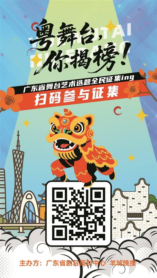 目前,广东省剧目策划中心联合羊城晚报共同推进“广东省舞台艺术选题征集计划”,面向全社会公开征集优秀舞台艺术创作选题。本次征集“无门槛”参与,题材“不设限”,作品可以创意选题、剧本或故事大纲等形式提交。 投稿请扫二维码—— |
