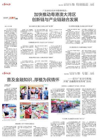 □薛江华 张萍 魏强 为深入贯彻落实关于建设国际科技创新中心的战略定位,粤港澳大湾区正全力推动创新链与产业链深度融合。23日,广东省政协召开常委会, 围绕“加快推动粤港澳大湾区创新