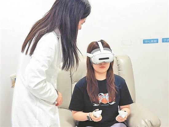 记者正在体验VR疗法 |