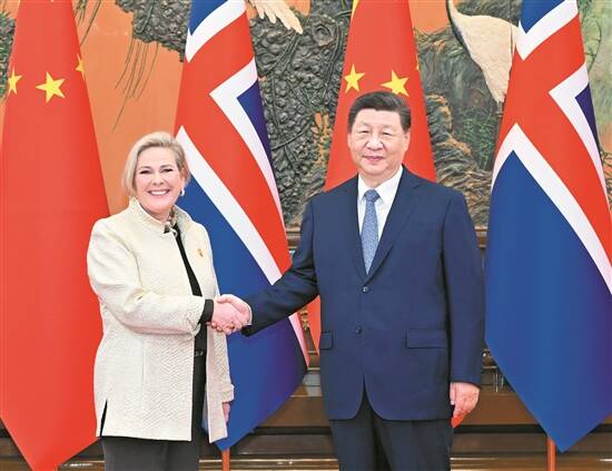 新华社电 10月14日上午,国家主席习近平在北京人民大会堂会见来华出席全球妇女峰会的冰岛总统托马斯多蒂尔。 习近平指出,中国和冰岛建交54年来,坚持相互尊重、互利合作,两国关系取得的丰硕成果充分证明,不同国情国家完全能够超越社会制度等差异实现互利共赢。中国重视发展同冰岛的关系,愿同冰方加强交往、深化合作,为两国人民带来更多福祉。 习近平强调,中冰双方要继续尊重和支持各自选择的发展道路,在涉及彼此核心利益和重大关切问题上坚定相互支持。深化经贸、地热、医疗健康等领域务实合作,共同推进绿色转型、应对气候变化。加强旅游、教育等方面人文交流,增进两国人民友谊和相互理解。中国和冰岛都支持多边主义,支持以联合国为核心的国际体系和以国际法为基础的国际秩序,双方要密切沟通和协调,共同致力于通过对话协商解决国际争端,推动构建更加公正合理的全球治理体系。要以全球妇女峰会成功召开为契机,促进全球妇女事业不断发展。 托马斯多蒂尔表示,祝贺中国成功主办全球妇女峰会,感谢中方热情接待,给予冰岛这样一个小国充分尊重。冰岛高度赞赏中国为促进世界妇女事业作出的重要贡献,愿同中方加强沟通合作,促进世界妇女全面发展。冰岛和中国长期友好,双边关系强劲有力,贸易、地热、旅游等领域合作成果丰硕。冰方高度重视冰中关系,愿同中方继续拓展合作空间,密切人文交流,推动两国关系得到更大发展。面对动荡不安的世界,中方为应对全球性挑战展现了领导力,冰方愿同中方加强沟通和协调,共同应对全球性挑战。 双方发表《中华人民共和国和冰岛关于进一步加强地热和绿色转型合作的联合声明》。 王毅参加会见。