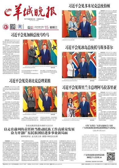 中共广东省委主管、主办 羊城晚报社出版 1957年10月1日创刊 34℃ 24℃ 2025年10月15日 乙巳年八月廿四 星期三
