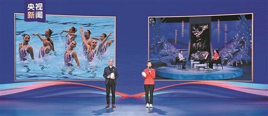 24日,花样游泳世界冠军陈晓君、第十五届全运会吉祥物设计者刘平云在活动现场推介全运会特别节目 |