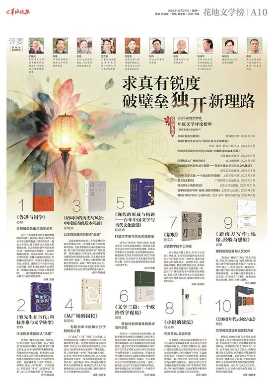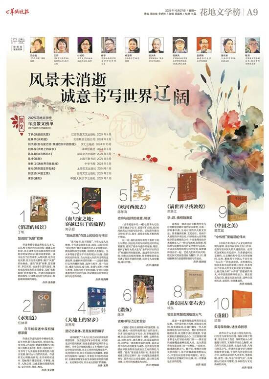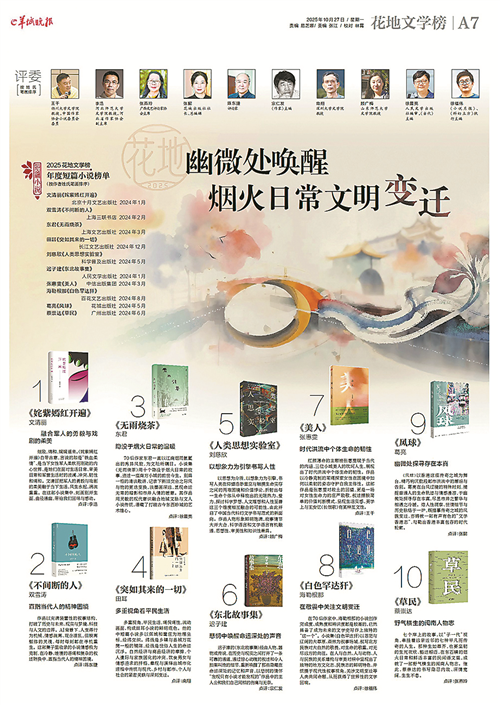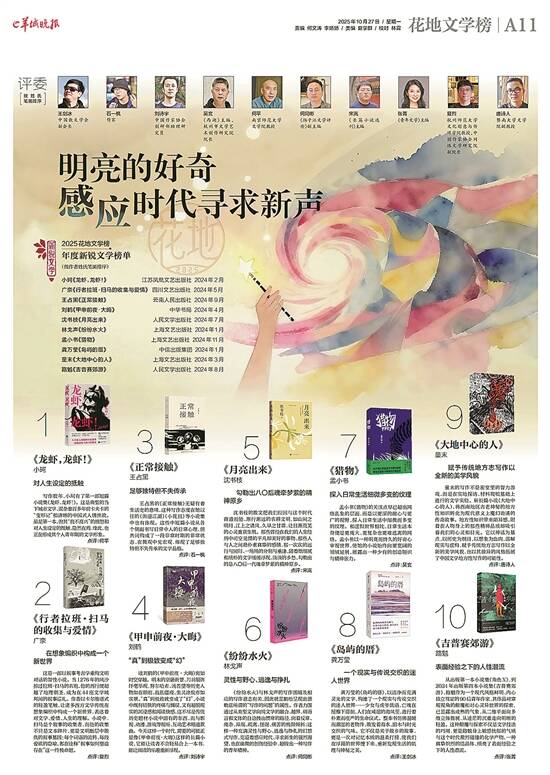 榜单包括年度长篇小说、短篇小说、诗歌、散文、文学评论、新锐文学六大门类,由60位专家学者组成权威评委团,对2024年度发表出版的中文原创文学作品,经过初评、复评,投票产生。随后,再经网络投票、终评等环节,六大门类各产生一位年度作家(作品),结果将在年度盛典活动前夕公布。 详见A6-A11