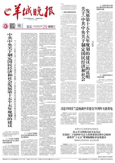 中共广东省委主管、主办 羊城晚报社出版 1957年10月1日创刊 2025年10月29日 乙巳年九月初九 星期三 责编/林圳 美编/肖莎 校对/刘博宇 报料