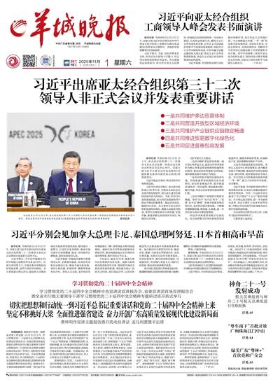 中共广东省委主管、主办 羊城晚报社出版 1957年10月1日创刊 26℃ 19℃ 2025年11月1日 乙巳年九月十二 星期六 责编/吴大海