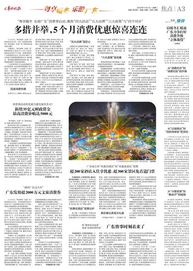 11月3日,“粤享暖冬 乐游广东”新闻发布会召开。本次消费季活动于2025年11月延续到2026年3月底,围绕在粤消费推出多项优惠政策。 广东作为全国最大的旅游客源地和目的地,今年前三季度接待入境游客超7000万人次,旅游外汇收入超1600亿元,分别同比增长32%、27%。其中,广东入境游国家前十中有9个是APEC成员,2026年APEC峰会在深圳举办的消息落地,更将吸引海内外游客前来。 省文化和旅游厅副厅长赵红在会上提到,此次APEC峰会落地深圳,是广东撬动入境旅游市场、激活全域文旅消费的重大机遇。 为做好广东入境游服务,省文旅厅将加大240小时过境免签、30天入境免签等政策宣传力度,用足用好广东关于加快入境旅游高质量发展23条举措,推进航旅深度融合,丰富入境游产品供给,完善入境旅游综合服务,加强融合宣传和精准营销,让更多游客享受到广东的政策红利。 另一方面,聚焦“游客体验”优化服务细节,在全运会、迎APEC峰会等重大活动期间,鼓励全省A级旅游景区、旅游住宿设施推出景区、住宿等优惠套餐及延迟退房等礼遇。同时,策划推出“深度体验线路”及一程多站旅游产品,让游客既能感受大湾区的速度与活力,也能触摸岭南文化的温度与深度。 此外,赵红表示将持续办好“广东旅游文化节”“请到广东过大年”等品牌活动。“请到广东过大年”将构建“年味共享计划”“文旅消费促进活动”“非遗里的广东年”“请到博物馆里过大年”等七大特色活动矩阵。同时,将着力打造“游在广东”“乐赏广东”两大文旅消费品牌,统筹推出千场展览、千场演出及系列特色民俗活动。 为加大文旅惠民补贴力度,赵红提到,在过大年重点活动期间,省级层面将发放总额不少于2000万元的文旅消费券,联动重点地市推出地方文旅消费券,叠加平台补贴及商户促销,形成“政府+平台+商户”三重让利的模式,让游客以高性价比感受广东的满满诚意。 省商务厅厅长张劲松还提到,广东将重点推进两个地图,一个是“广东购物地图”,聚焦中外消费者喜爱的步行街、商圈、退税免税店、首店和精品老店等,推动入驻商家集中开展促销优惠,让消费者轻松发现优质购物点、畅享购物乐趣。另一张地图则是“广东美食地图”,首批精选全省21个地市300道地标美食,深入直观地向广大消费者和全球游客展现粤式美食的独特魅力。 羊城晚报记者 杭莹