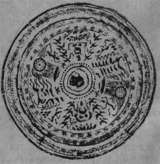 图2:河南孟津出土银壳画像铜镜拓片(采自苏健《洛阳发现银壳画像铜镜》,图1) |