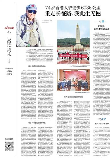 文/羊城晚报记者 张晗 图/受访者提供 一顶红军八角帽、一面被精心呵护的“香港大爷重走长征路”红旗,74岁的郑镇炎,用255个日夜的步行,丈量出6036公里的漫漫征途。 从